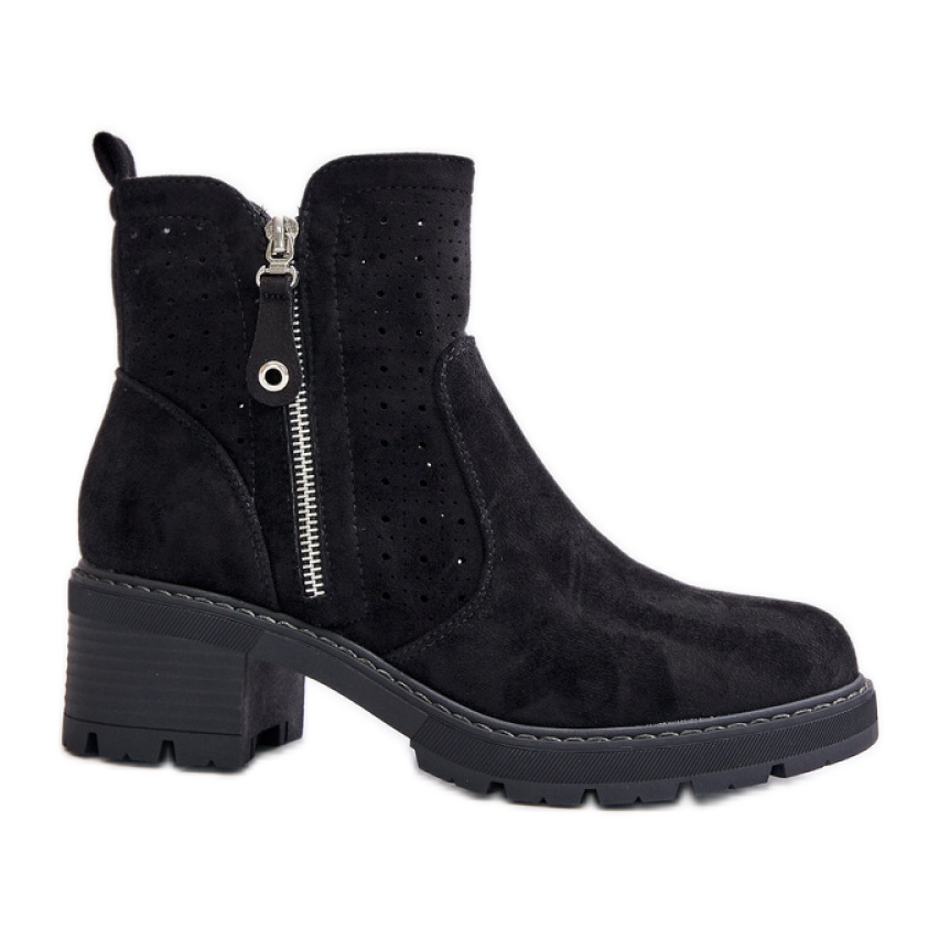 Um salto estável e baixo com uma altura de 5 cm permite que você use confortavelmente ao longo do dia, e o nariz redondo enfatiza ainda mais seu caráter feminino. Graças à fixação prática do zíper, colocar e tirar botas é rápido e simples. O interior tem sido isolado com tecido, o que os torna uma solução ideal para dias mais frios.