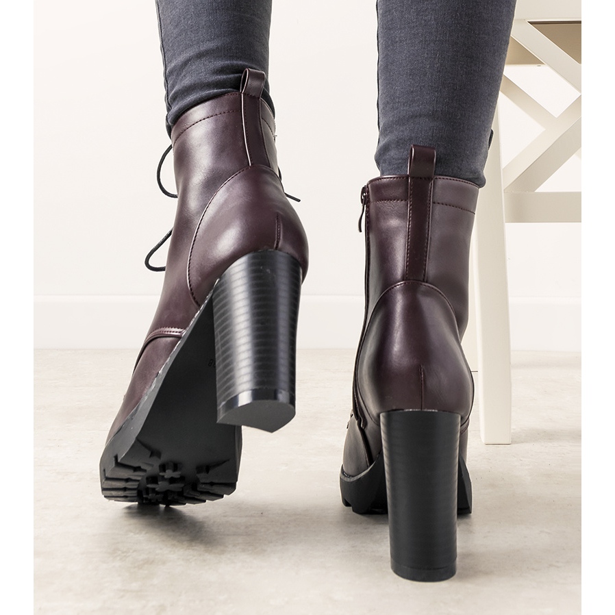 Detalhes: Botas femininas marrons com amarração no poste Najera vermelho