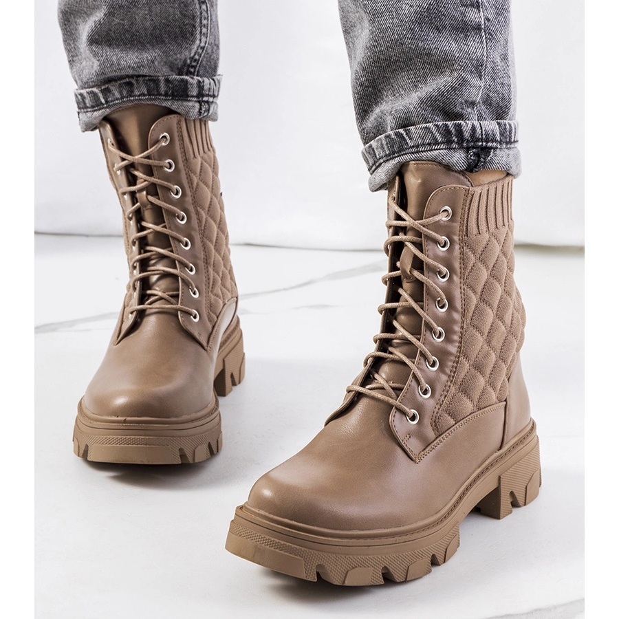 Descubra as botas de mulheres marrons com uma parte superior de meia que se deliciará com sua moda e conforto. Esses sapatos elegantes adicionarão o personagem a qualquer estilização, e sua sola alta no estilo dos trappers garante que eles estejam no topo nesta temporada. Feito de couro ecológico de alta qualidade, as botas marrons oferecem conforto o dia todo.