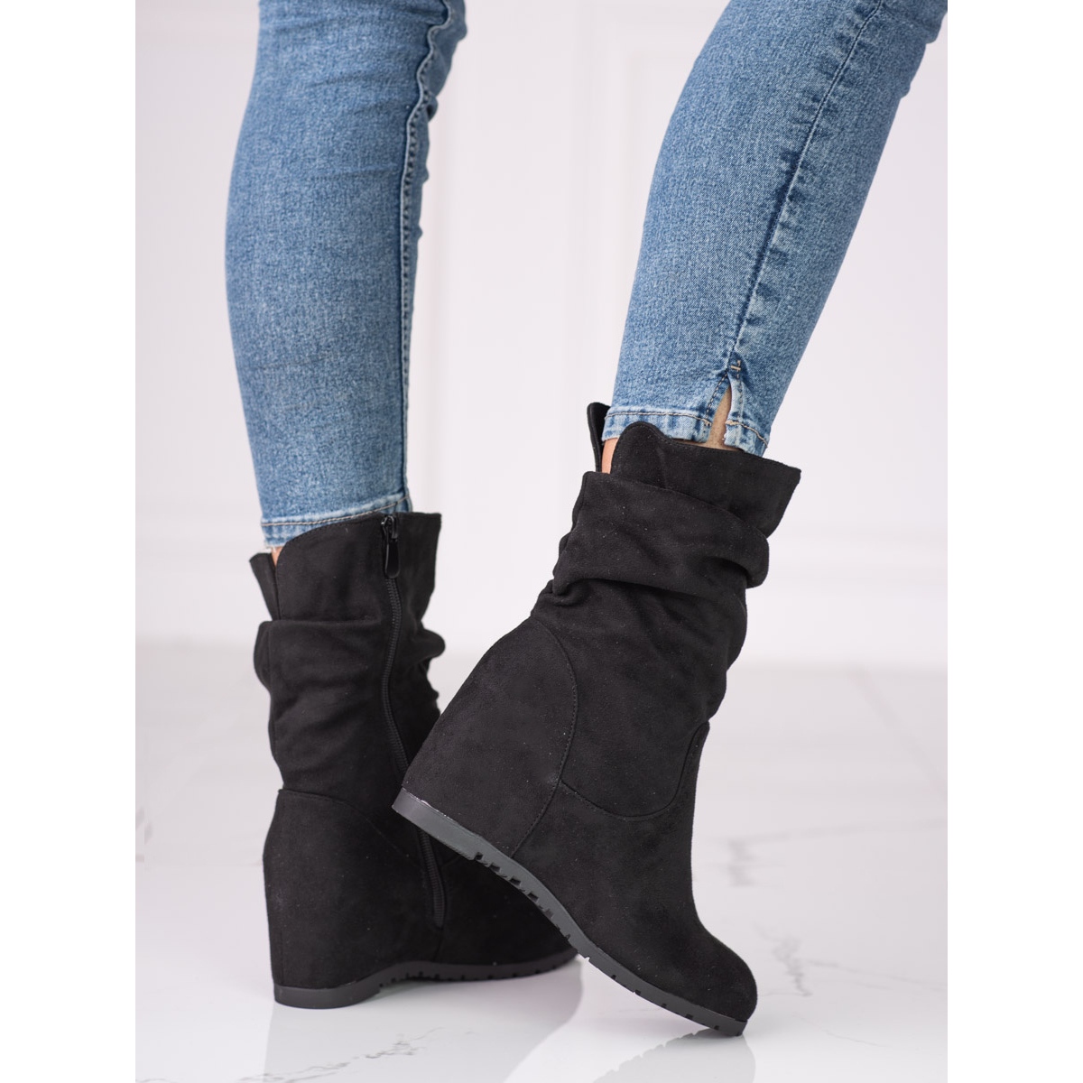SHELOVET Botas femininas na cunha Shelovet com babados na parte superior preto