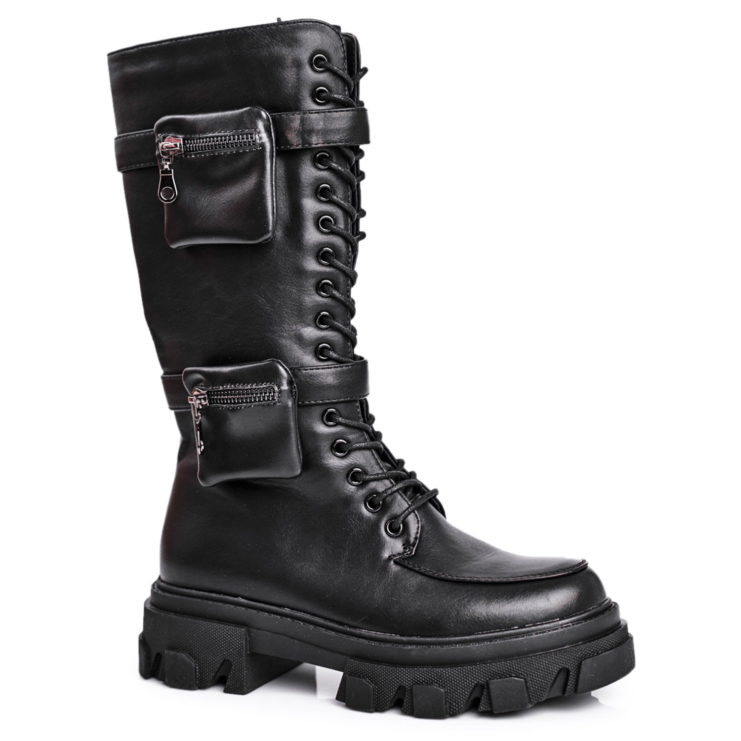 O design do calçado surpreende pelos detalhes - duas bolsas decorativas na lateral do cabedal conferem um caráter único e ao mesmo tempo permitem guardar pequenos itens. O fecho prateado no interior é um elemento prático que permite calçar as botas de forma rápida e cómoda.