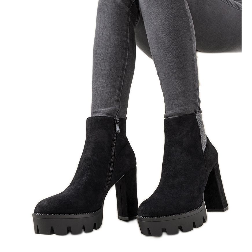 As botas femininas pretas com sola grossa, Idalina, são a escolha perfeita para toda mulher que deseja adicionar um caráter único ao seu estilo outonal. Um poste alto com uma altura impressionante de 11 cm enfatiza as pernas ao mesmo tempo que garante conforto de uso.
