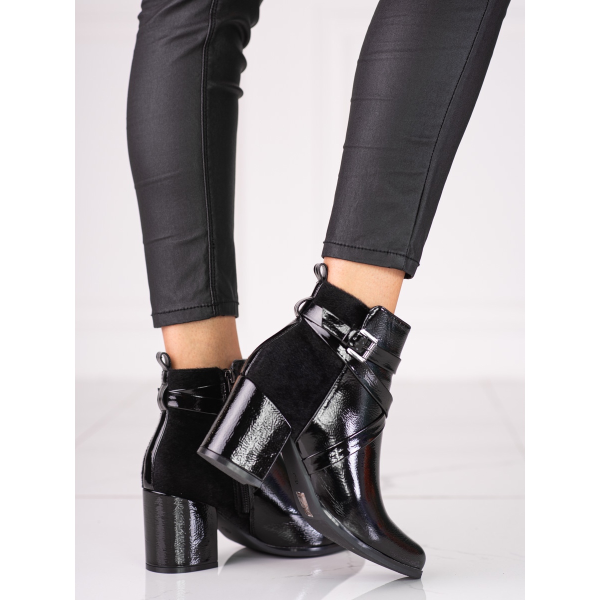Descubra elegância e conforto num dos mais recentes modelos de botins femininos de salto alto da marca Shelovet. Estas botas pretas encantam não só pelo seu aspecto moderno, mas também pelo seu acabamento cuidadoso. Perfeitos para o outono/inverno, enquadram-se perfeitamente num estilo casual e elegante, o que os torna uma adição versátil a qualquer guarda-roupa.