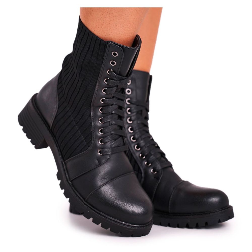 Detalhes: FG1 Botas femininas pretas Brielle com meia preto