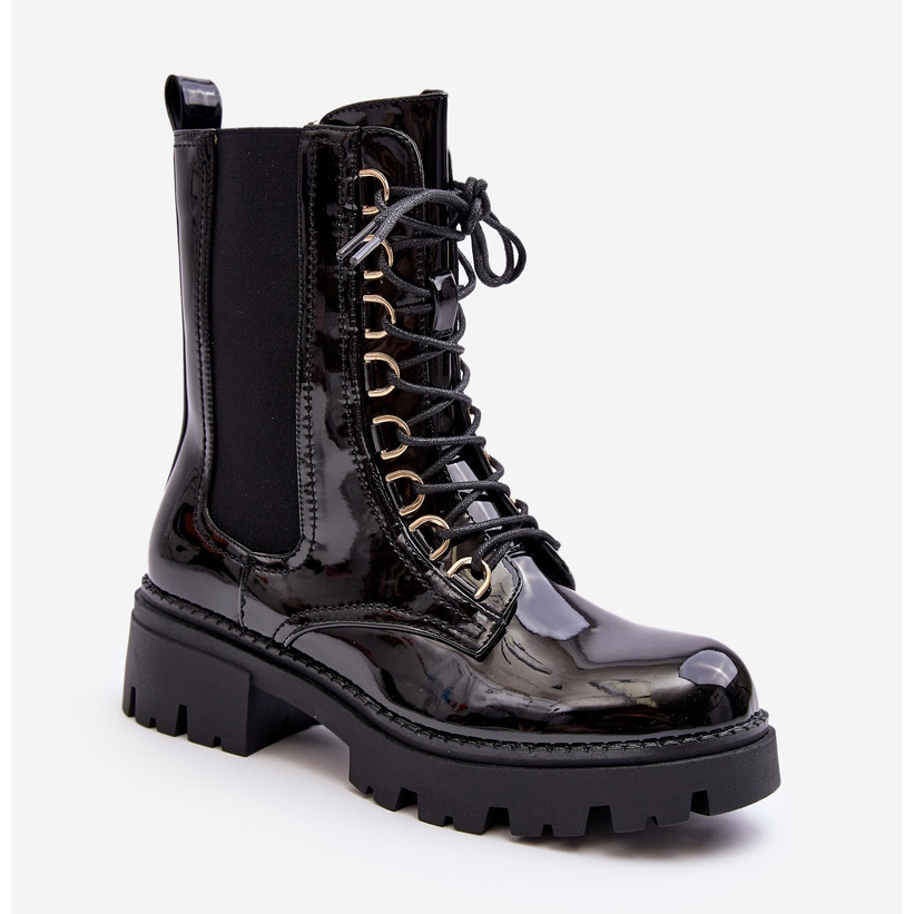 Elegante e universal - é assim que você pode descrever brevemente as Black Patent Worker Boots da Charmea. Esta é uma proposta única para cada mulher que deseja aliar conforto, funcionalidade e estilo original. Perfeitas para os dias mais frios de outono e inverno, estas botas combinam eficazmente soluções práticas com um design moderno.