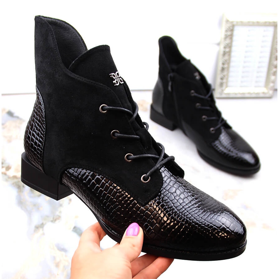 As cores são o preto clássico, o que torna as botas Vinceza 16439 extremamente universais. O couro ecológico envernizado confere-lhes um aspecto nobre e permite uma fácil manutenção da limpeza. No entanto, a decoração delicada na forma de elementos de padrões animais acrescenta caráter e enfatiza sutilmente a individualidade de quem o usa.