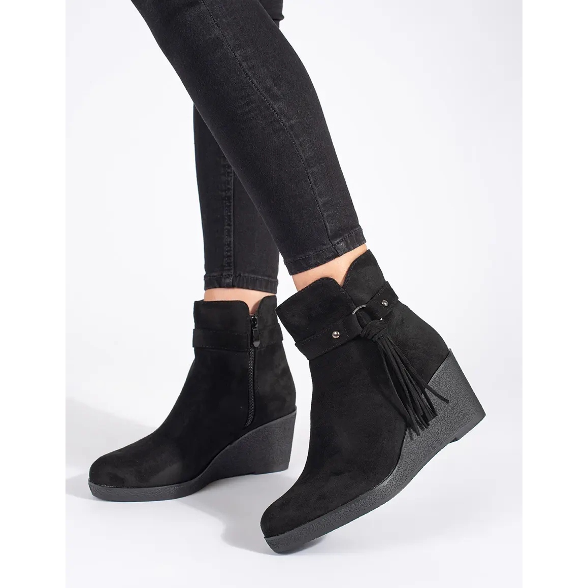 - Modelo: Botins de camurça com salto cunha
