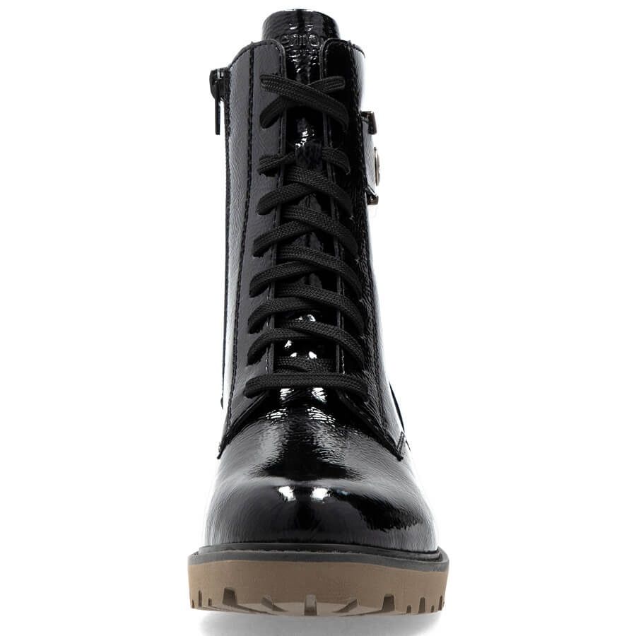 Detalhes: Botas femininas pretas de couro envernizado Remonte D8663-00 preto