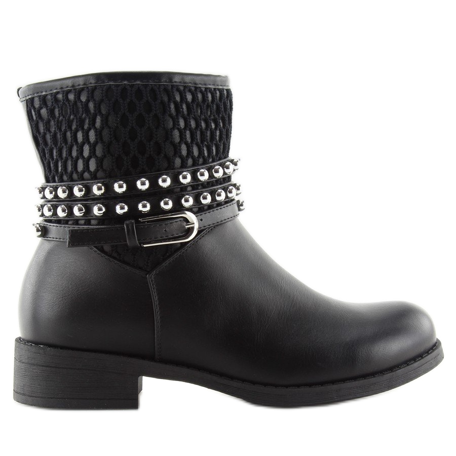 Apresentamos os botins pretos femininos PE131P Preto - a escolha perfeita para mulheres que valorizam uma combinação de estilo e conforto. Estas botas elegantes distinguem-se por um cano simples e largo que realça perfeitamente a figura. Decorados com uma delicada faixa com bolas prateadas, conferem um caráter único a cada estilo.