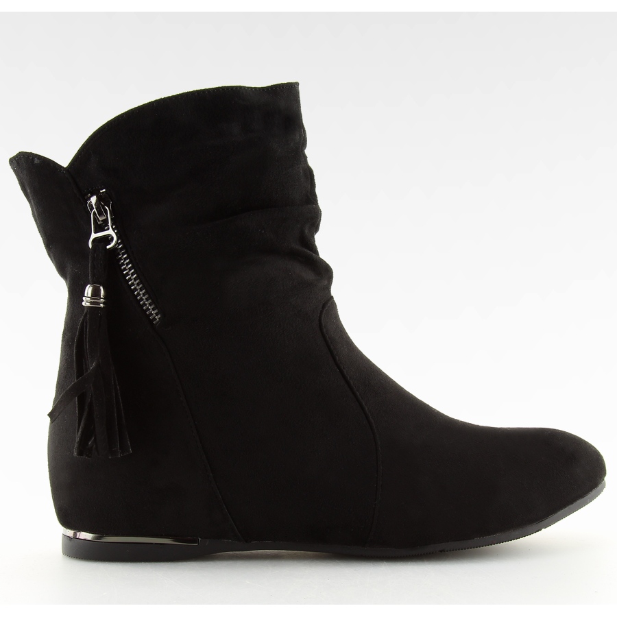 Descubra conforto e estilo extraordinários com os botins pretos femininos VQ-362. Estes sapatos de design moderno com cunha oculta de 3 cm de altura são a escolha perfeita para os dias mais frios. O seu carácter único é realçado pela parte superior com folhos e pelos acabamentos elegantes, como o fecho com franja e uma placa subtil na sola, que lhes conferem um encanto único.