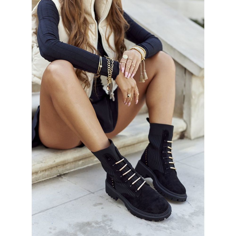 O cabedal alto tipo meia, com excelente elasticidade, torna extremamente fácil calçar o calçado e ao mesmo tempo garante um ajuste perfeito à panturrilha. Os acessórios dourados enfatizam sutilmente seu estilo único, tornando-os extremamente elegantes e modernos.