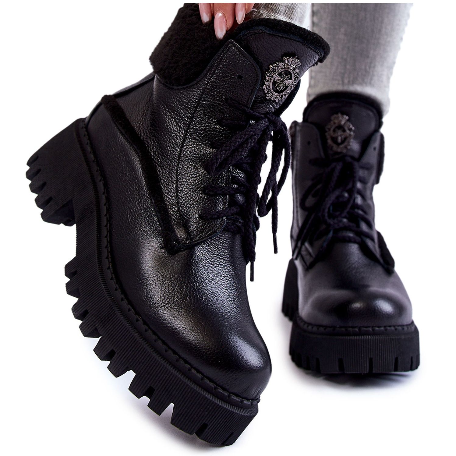 Detalhes: PL5 Botas femininas Trapper de couro preto Vergo