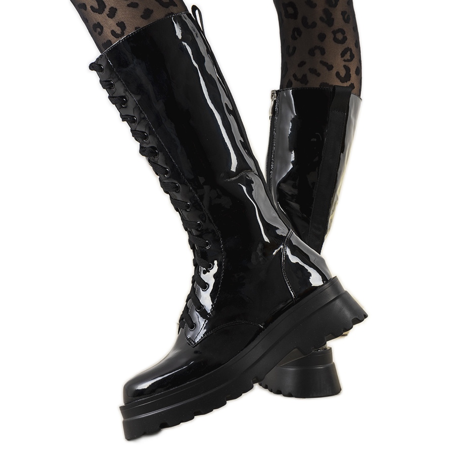 Detalhes: Botas Fora de couro envernizado pretas preto