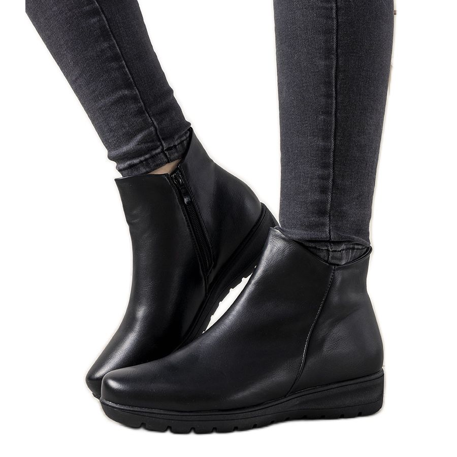 Descubra os clássicos com um estilo elegante - botins pretos lisos Garrido. Estas botas estilosas, confeccionadas em couro ecológico de alta qualidade, são a escolha perfeita para mulheres que valorizam o conforto e um look fashion. Graças a uma cunha delicada, esses sapatos enfatizam sutilmente a figura, ao mesmo tempo que garantem conforto nas atividades do dia a dia.