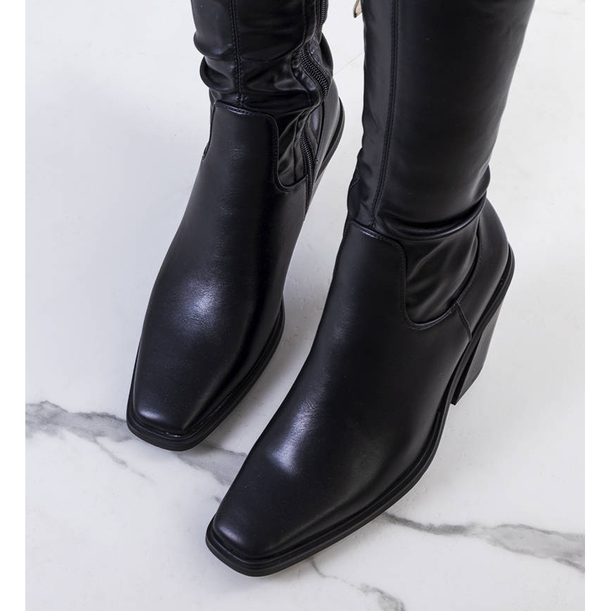 Mergulhe no estilo nouveau com as botas Grant da marca PA1! Estes mosqueteiros pretos são a combinação perfeita de design moderno e conforto de uso. A sola grossa e a biqueira quadrada criam um visual único que chama a atenção e acrescenta elegância a qualquer estilo.