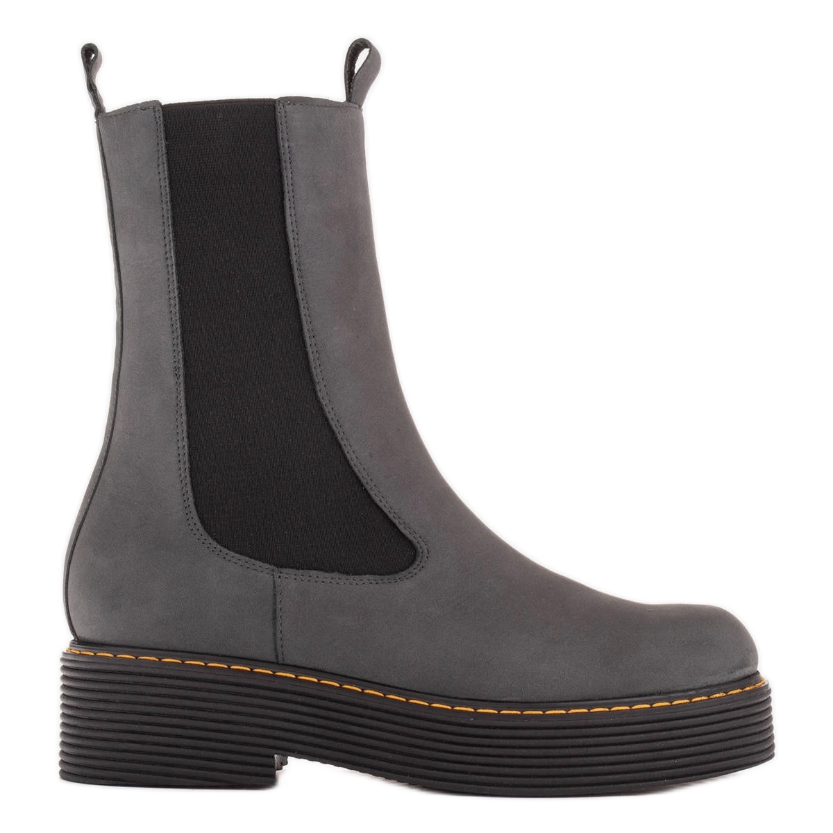 Botas Greta, elegantes e confortáveis femininas, em uma cor cinza universal. Feito de uma nubuck de couro, com uma inserção isolante de feltro - perfeita para dias mais frios. A estrutura inserida com borracha flexível garante desgaste rápido e conforto do uso, enquanto a plataforma dá uma aparência e estabilidade na moda.