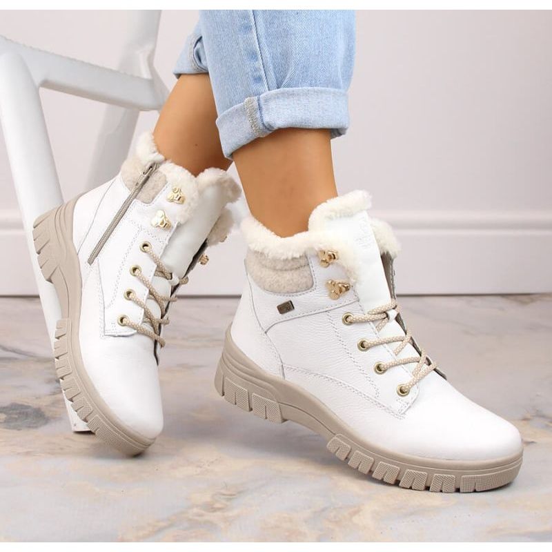 Detalhes: Rieker Botas impermeáveis de couro com isolamento de lã Remonte W RKR628 branco