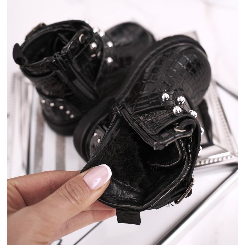 Oferecemos excelentes botas infantis da FRROCK, que serão a solução perfeita para os dias mais frios. Estas botas pretas forradas de pele são uma combinação de estilo, conforto e funcionalidade. Confeccionados em couro ecológico de alta qualidade, distinguem-se pela atraente decoração em couro croco, que confere elegância.