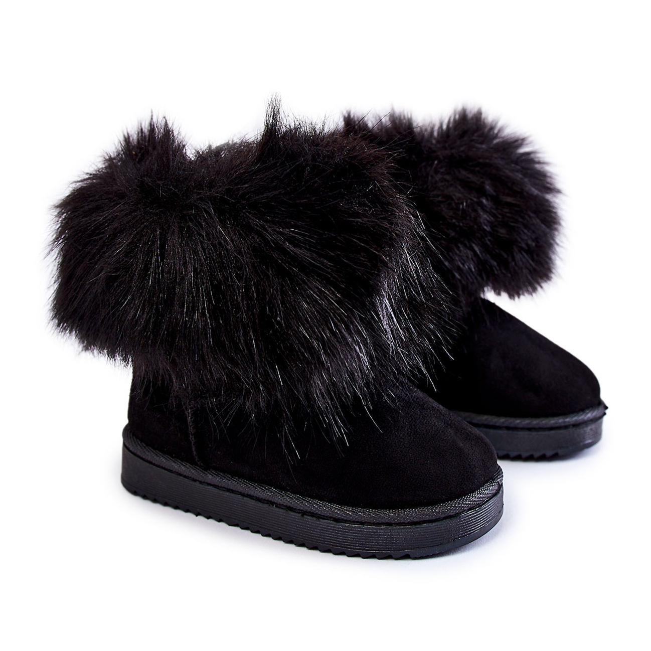 Detalhes: Botas infantis de neve com pêlo, pretas preto