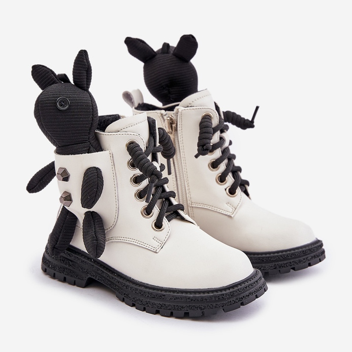 Detalhes: Botas infantis isoladas de couro com zíper e ursinho de pelúcia Vinceza 36261 branco