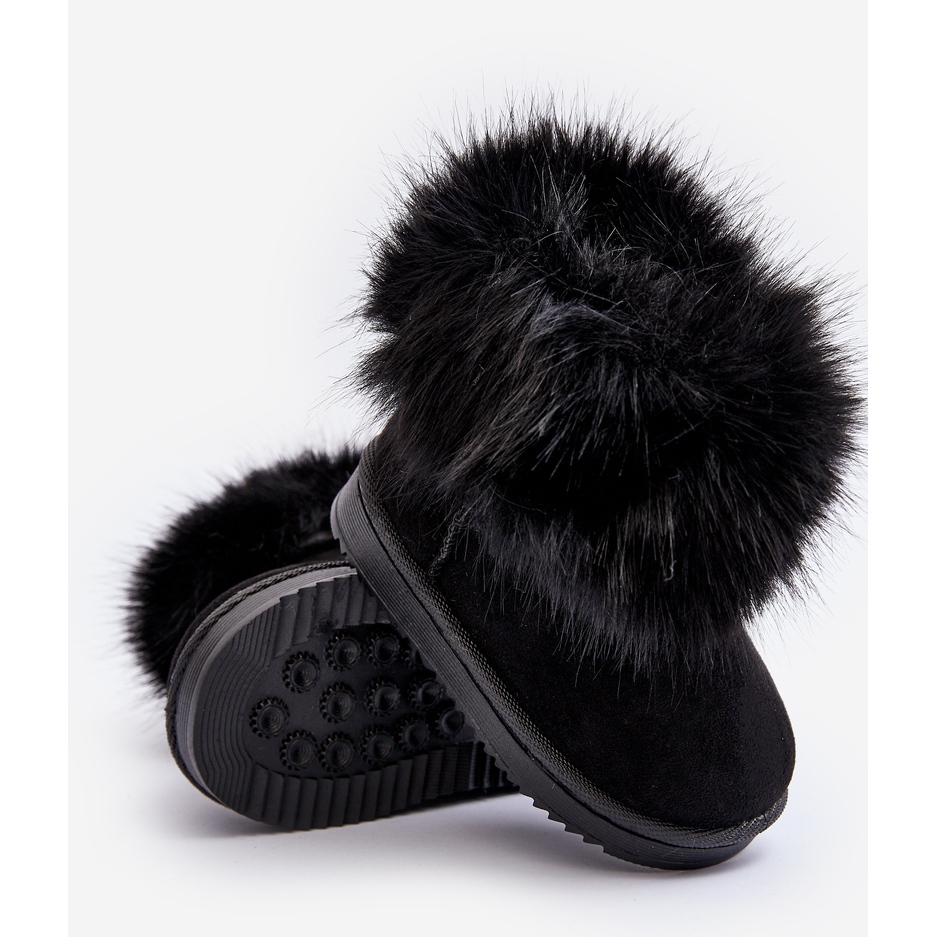 Detalhes: Botas infantis isoladas para neve com pele, pretas Nohie preto