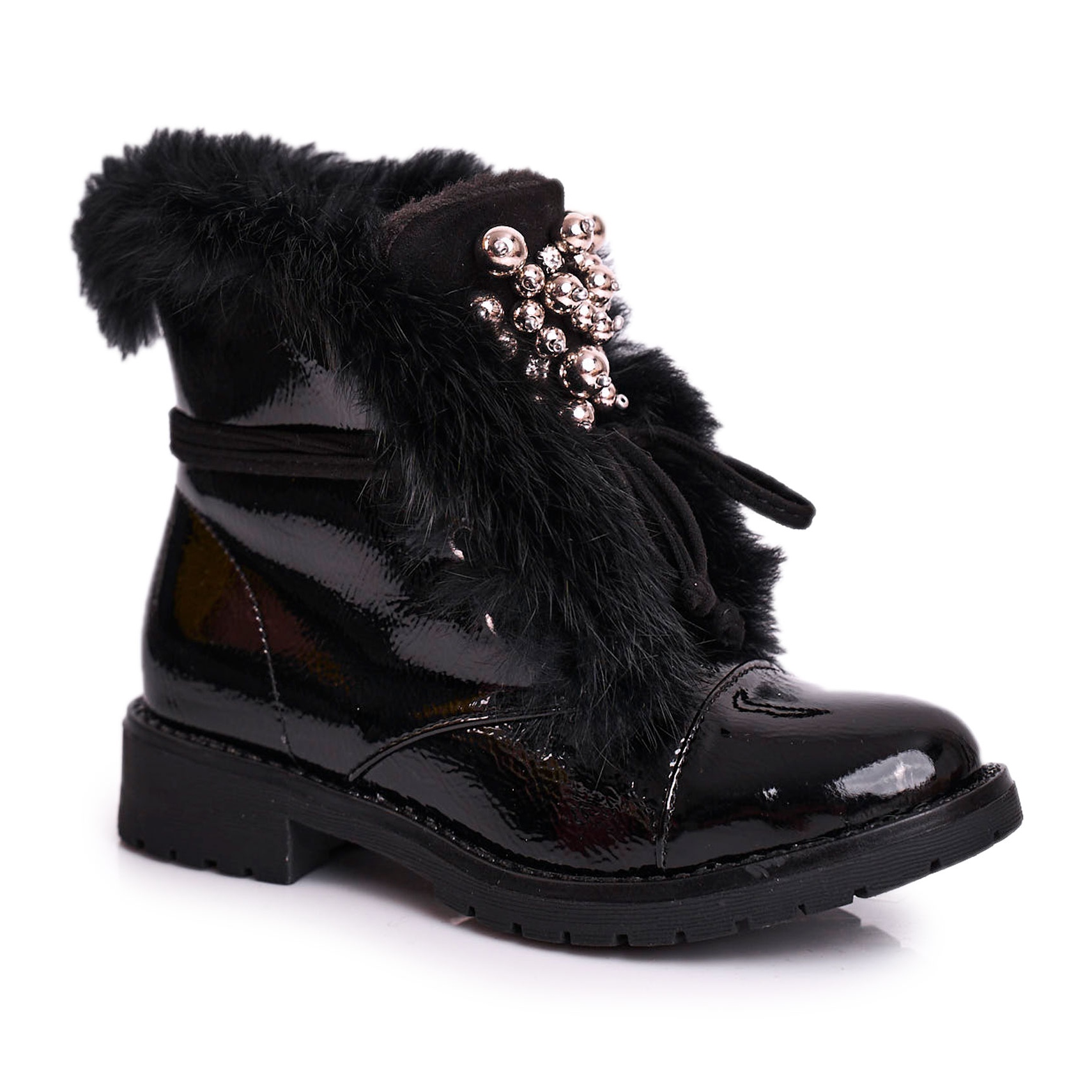 MSMG MSMG Botas infantis lacadas a quente em ella preta preto