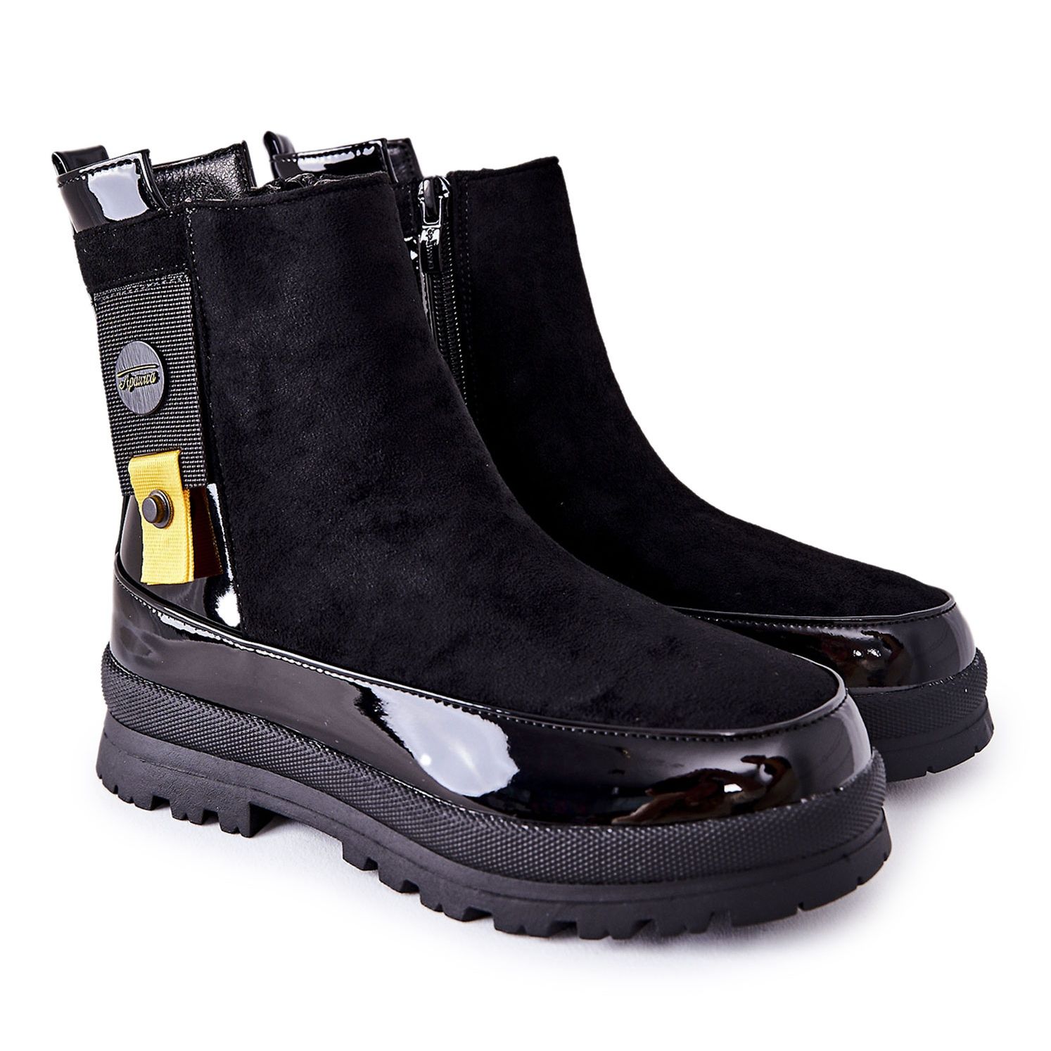 Apawwa Apawwa Botas infantis lacadas de camurça preta My Lovely preto preto