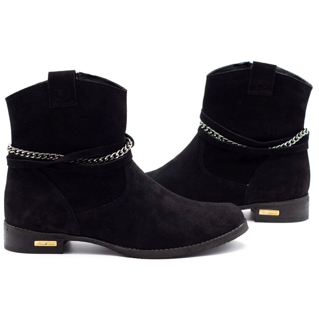 Detalhes: Olivier Botas isoladas femininas negras com corrente Luna preto