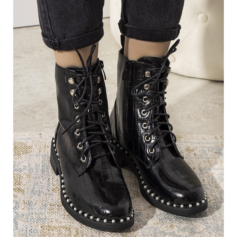 Fechados com zíper e atacadores, os botins Nancy são extremamente práticos. A sola em plástico garante durabilidade e a palmilha em tecido garante ventilação adequada, o que é especialmente importante quando usado por muito tempo.