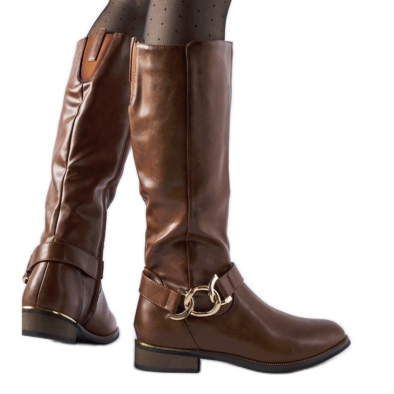 Botas isoladas marrons decoradas com fivela Ortega marrom