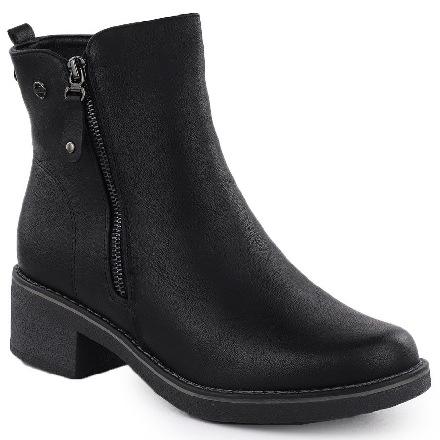 A parte superior com uma altura de cerca de 13 cm fornece suporte adequado ao cubo, e o revestimento de pele macio faz com que os pés pareçam quentes e aconchegantes, mesmo em dias mais frios. As botas definidas em um bloco estável com uma altura de 4,5 cm são uma ótima opção para mulheres que valorizam o conforto e o estilo. Graças à espessura da sola de 1,5 cm, você pode desfrutar de uma certa etapa em várias superfícies.