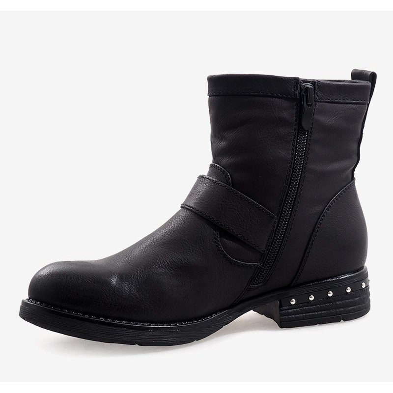 Descubra elegância e conforto com botins pretos com isolamento 408-PA, que combinam design moderno com praticidade. Estas botas femininas únicas, confeccionadas em material semelhante ao couro, distinguem-se não só pelo seu acabamento cuidadoso, mas também pelas decorações originais em forma de strass e tachas, que lhes conferem carácter.