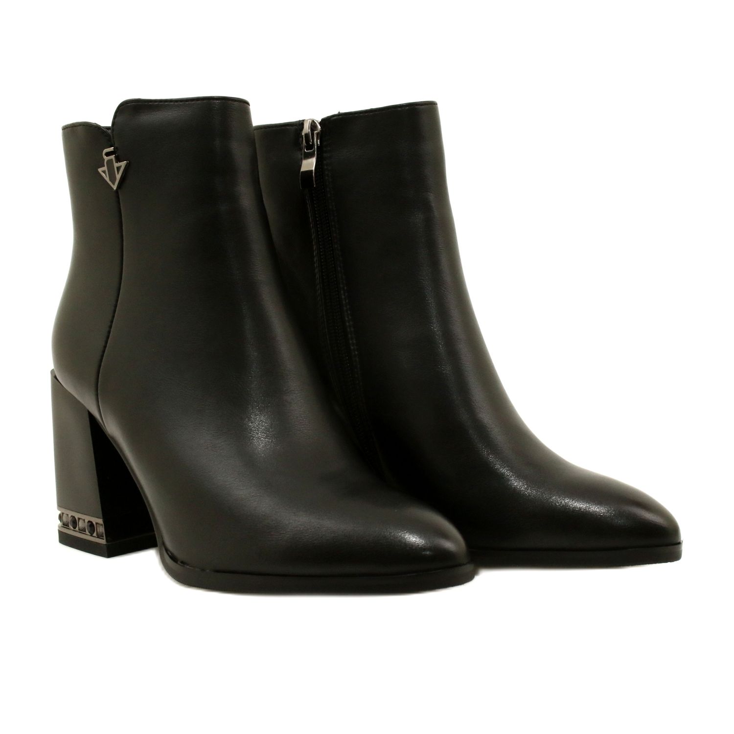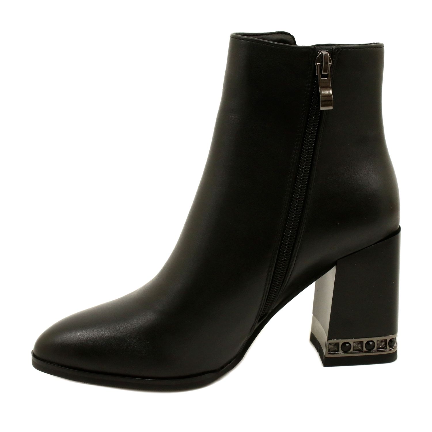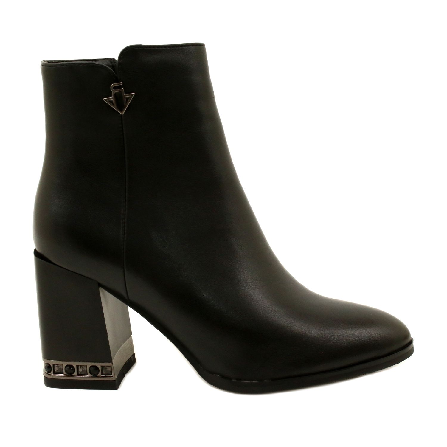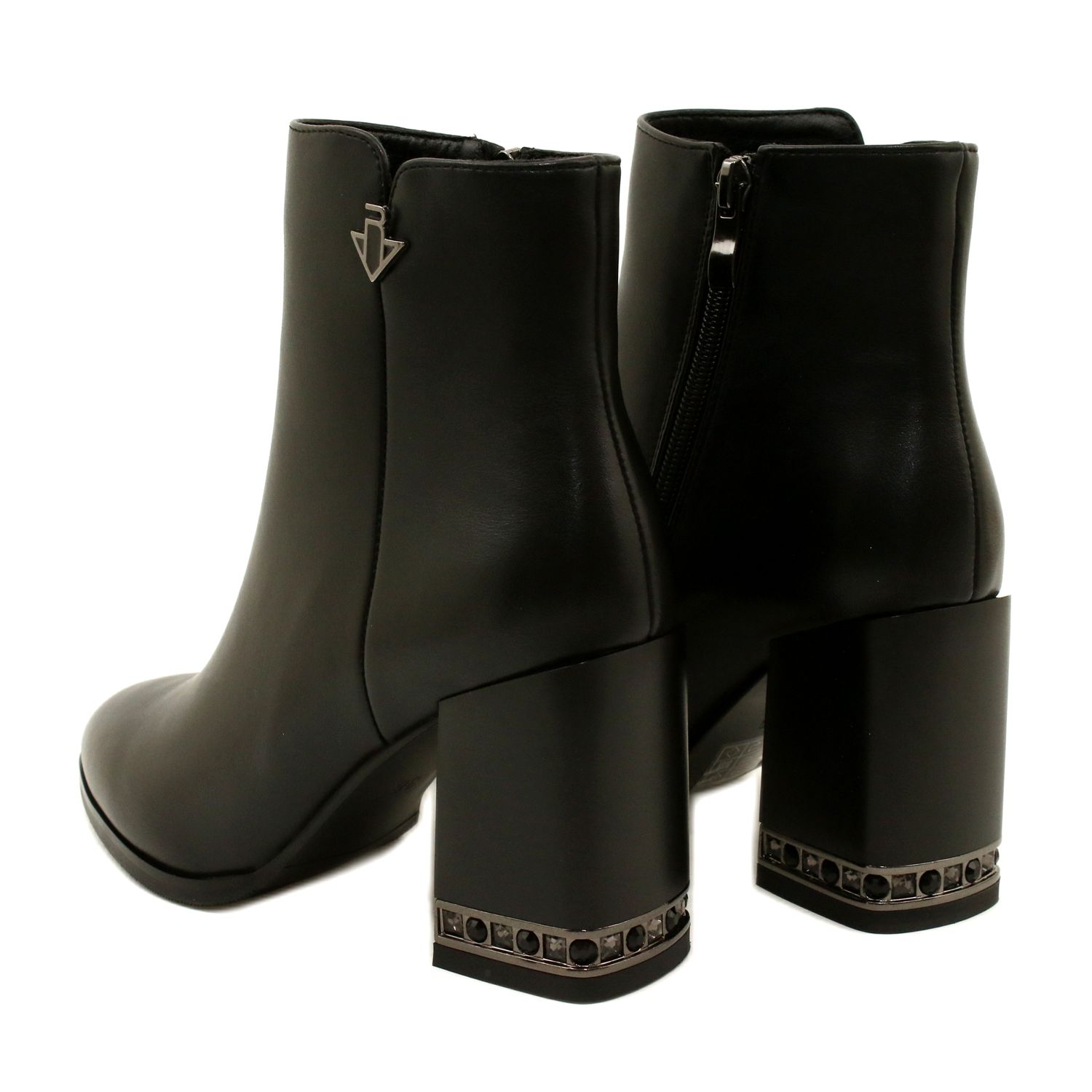 - Modelo: Botins pretos com decoração no salto