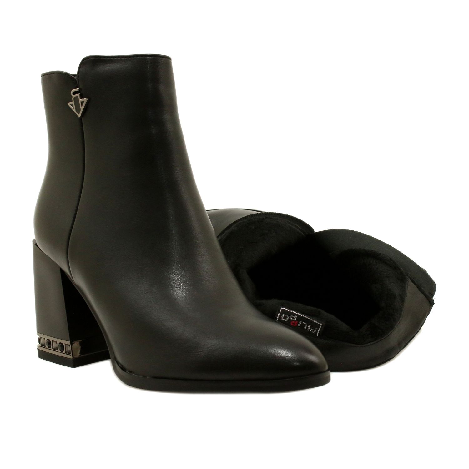 Elegante e prático ao mesmo tempo - essas botas pretas da Filippo combinam um corte clássico com detalhes espetaculares. Feito de couro orgânico, com isolamento na forma de um pêlo grosso e curto, eles funcionarão como uma certa escolha para a estação do inverno de outono. Um post decorativo (8 cm) explodido com zircões lhes dá elegância elegante, e o nariz de amêndoa sutilmente magro a figura.