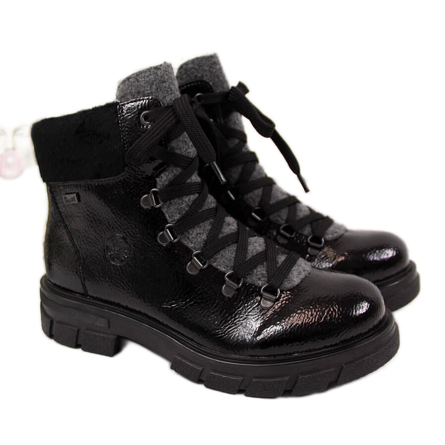 Detalhes: Botas isolantes lacadas pretas de mulher Rieker Z9132-00 preto