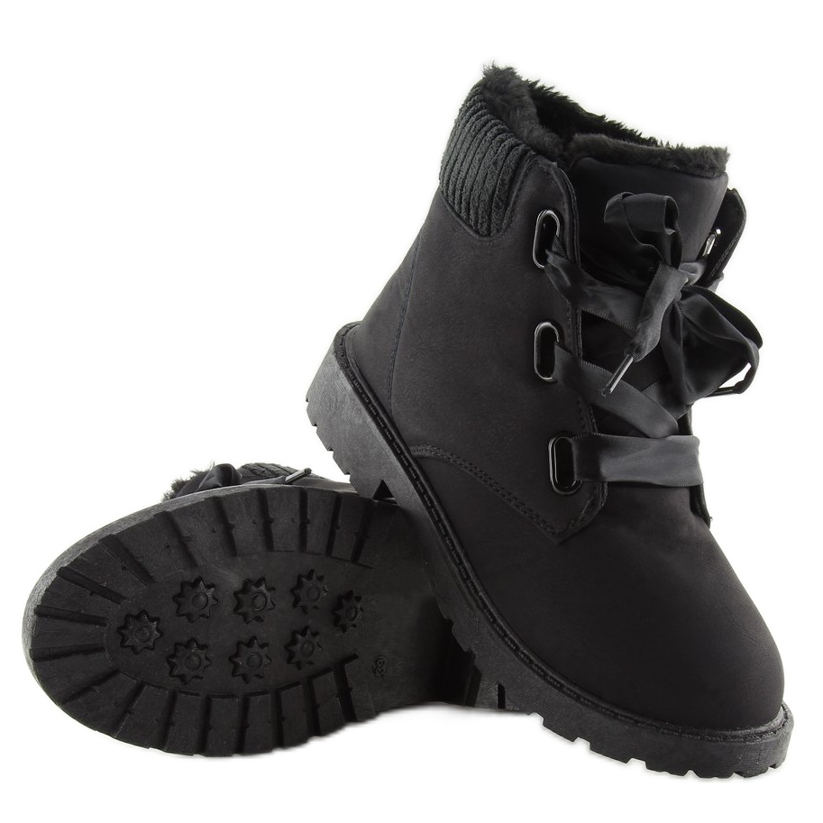 Em vez dos atacadores clássicos, as botas são equipadas com uma fita de cetim, o que lhes confere um carácter e estilo únicos - um must-have desta temporada! Uma sola sólida com protetor proporciona excelente aderência, o que é extremamente importante nas difíceis condições de inverno. Além disso, a parte interna do calçado é forrada com pêlo grosso, o que garante conforto e aconchego mesmo nos dias mais frios.