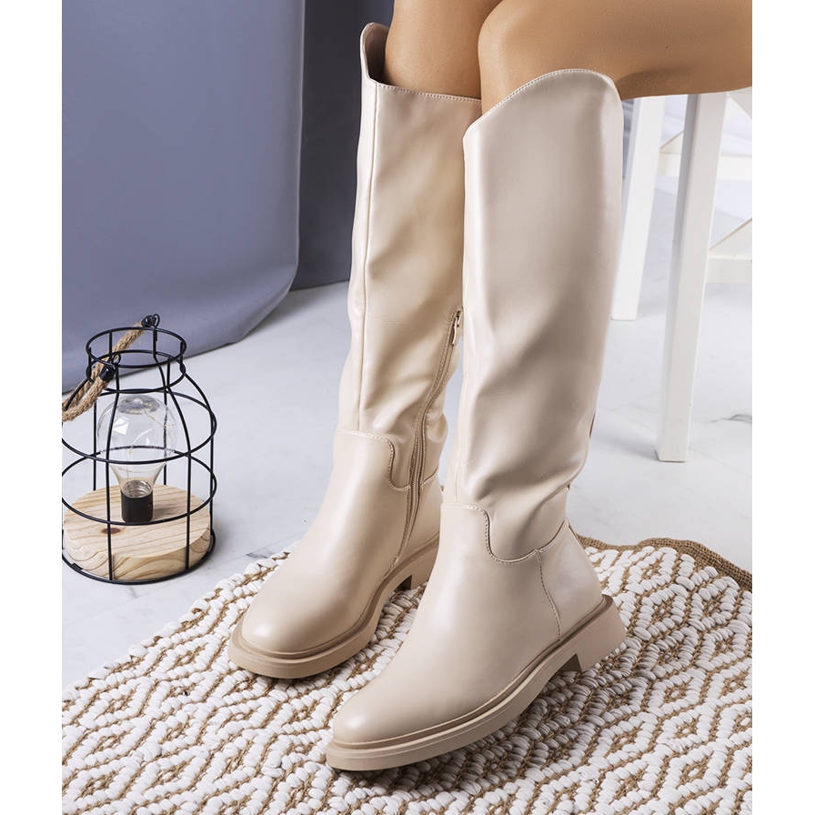 - Beige é uma cor neutra - as botas jogarão bem com tons terrosos e preto clássico.