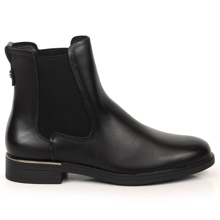 As botas têm bico redondo, o que confere sutileza, e os materiais sintéticos utilizados na sola garantem durabilidade e boa aderência. Estes botins pretos são universais e combinam perfeitamente com uma variedade de estilos, do casual ao mais elegante.