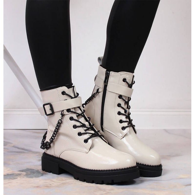 Botas pintadas de Laura La.fi em PMR28 - bege, isoladas, com uma corrente