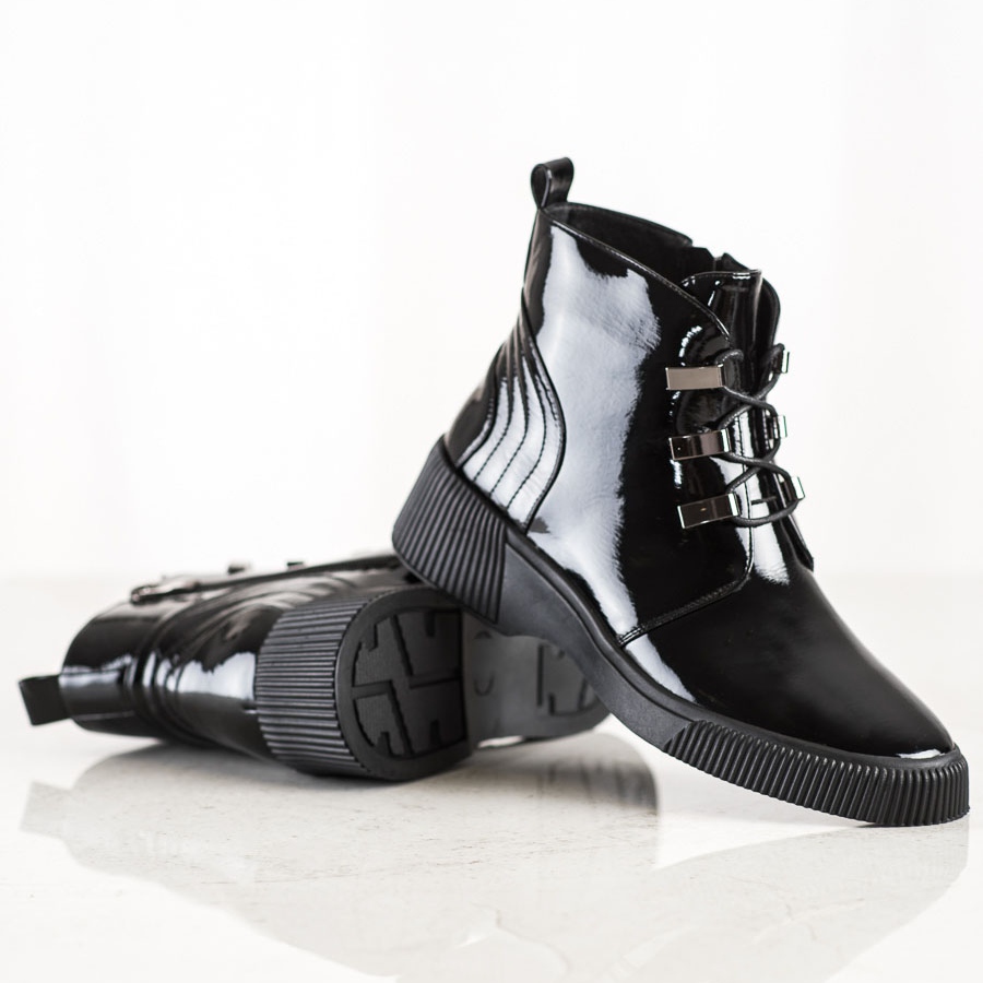 Apresentamos botins plataforma lacados da conceituada marca S. BARSKI, que são a escolha perfeita para a mulher moderna que valoriza estilo e conforto. Estes elegantes botins pretos certamente atrairão a atenção e darão elegância a qualquer estilo.