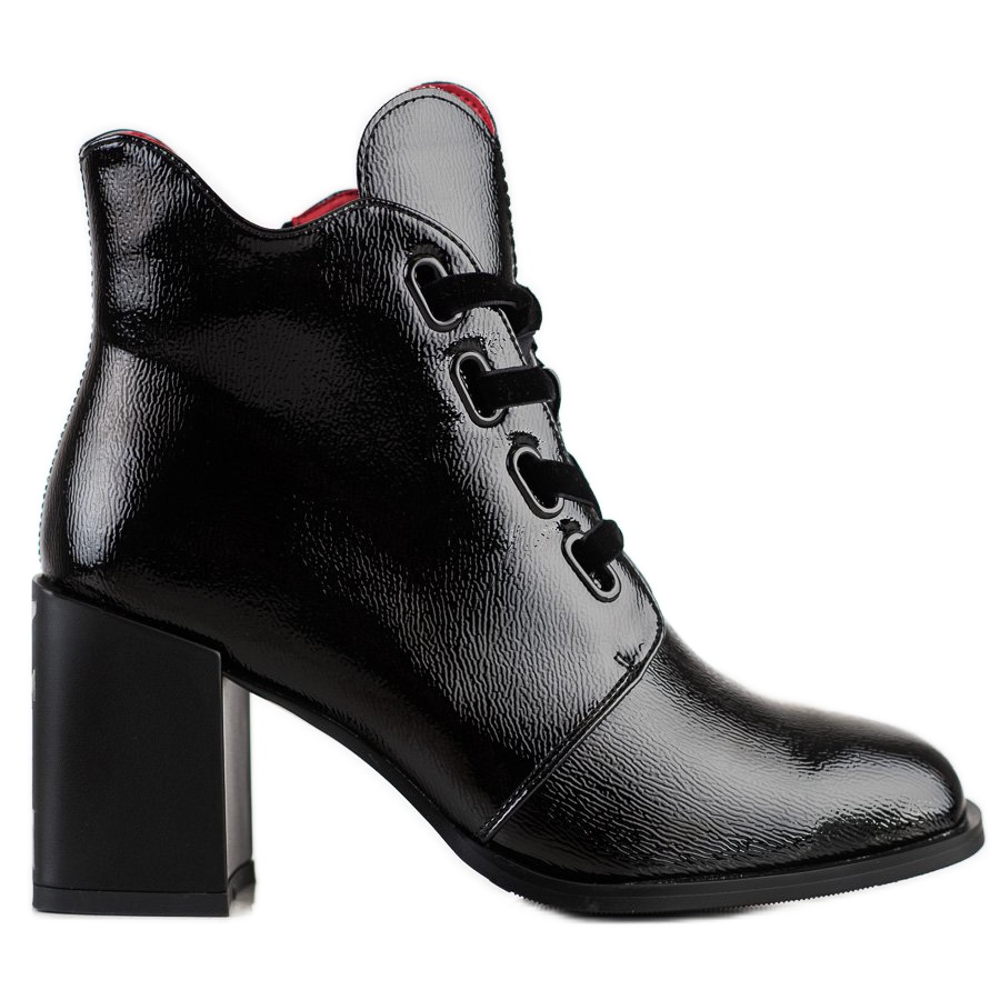 O acabamento lacado enfatiza ainda mais sua aparência única, e a ponta redonda os torna confortáveis e adequados para uso prolongado. O salto em forma de bloco de 8 cm de altura proporciona equilíbrio e conforto adequados, o que torna essas botas a escolha ideal para mulheres que querem ter estilo sem abrir mão do conforto.