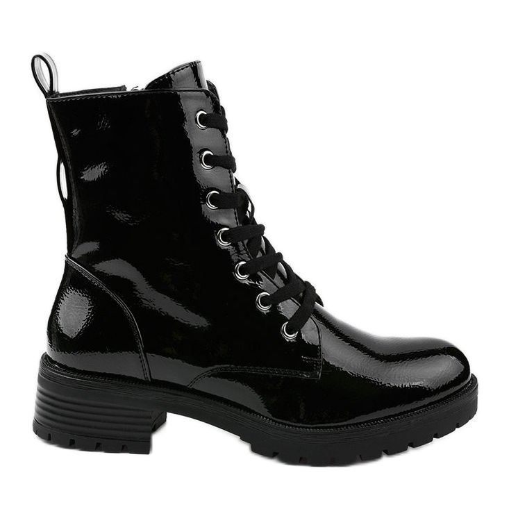 Detalhes: Botas laqueadas pretas da Slider preto