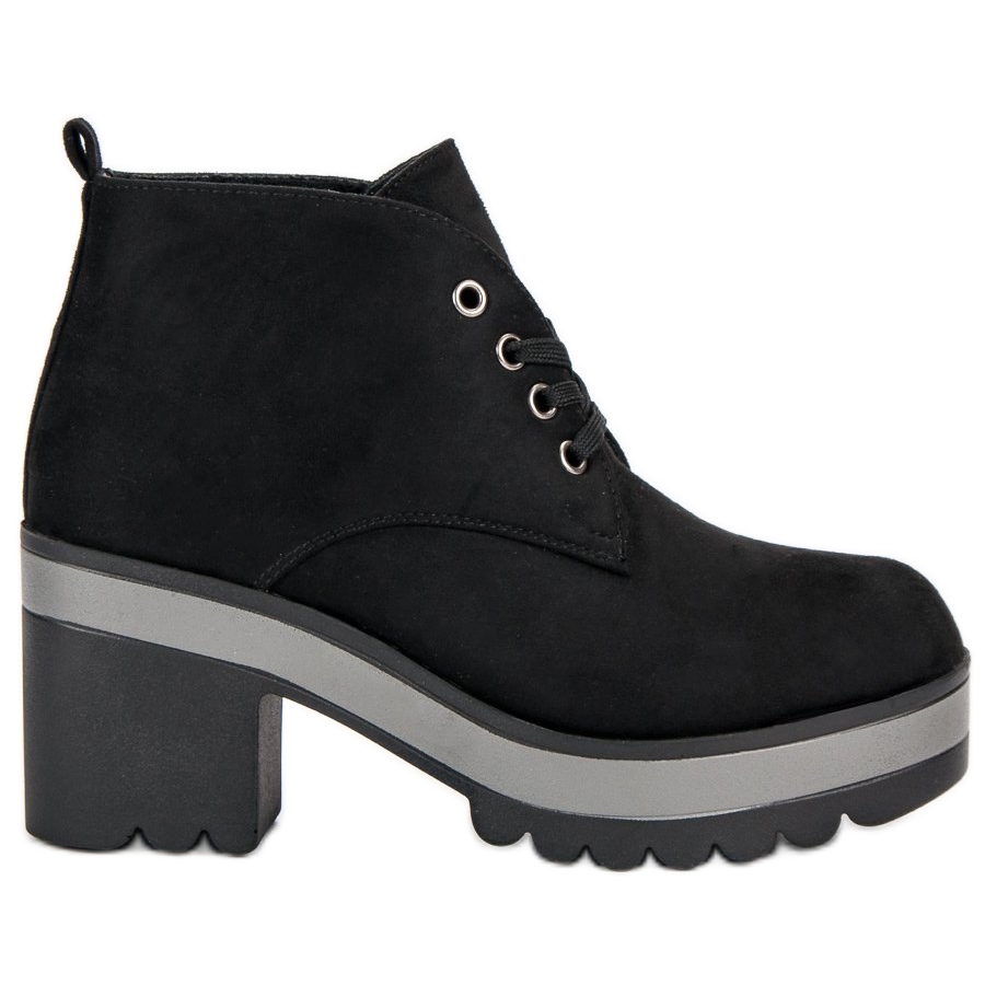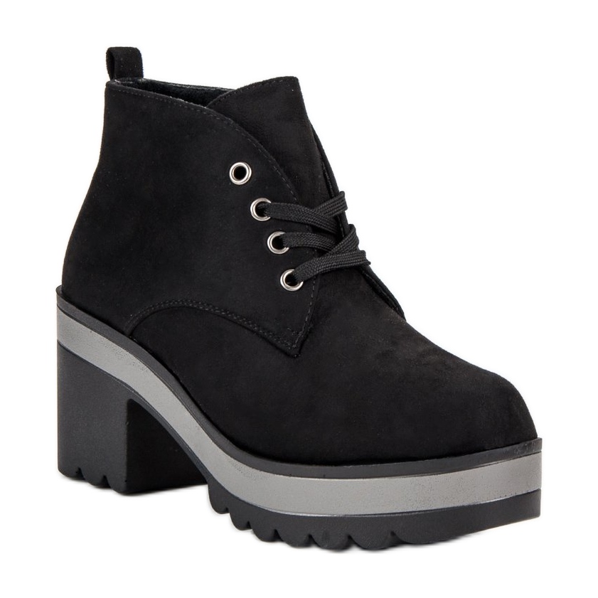As botas têm salto maciço de 8 cm de altura, o que confere elegância, mas graças à plataforma de 3,5 cm de altura tornam-se extremamente estáveis. O fecho de cadarço garante um ajuste perfeito ao pé.