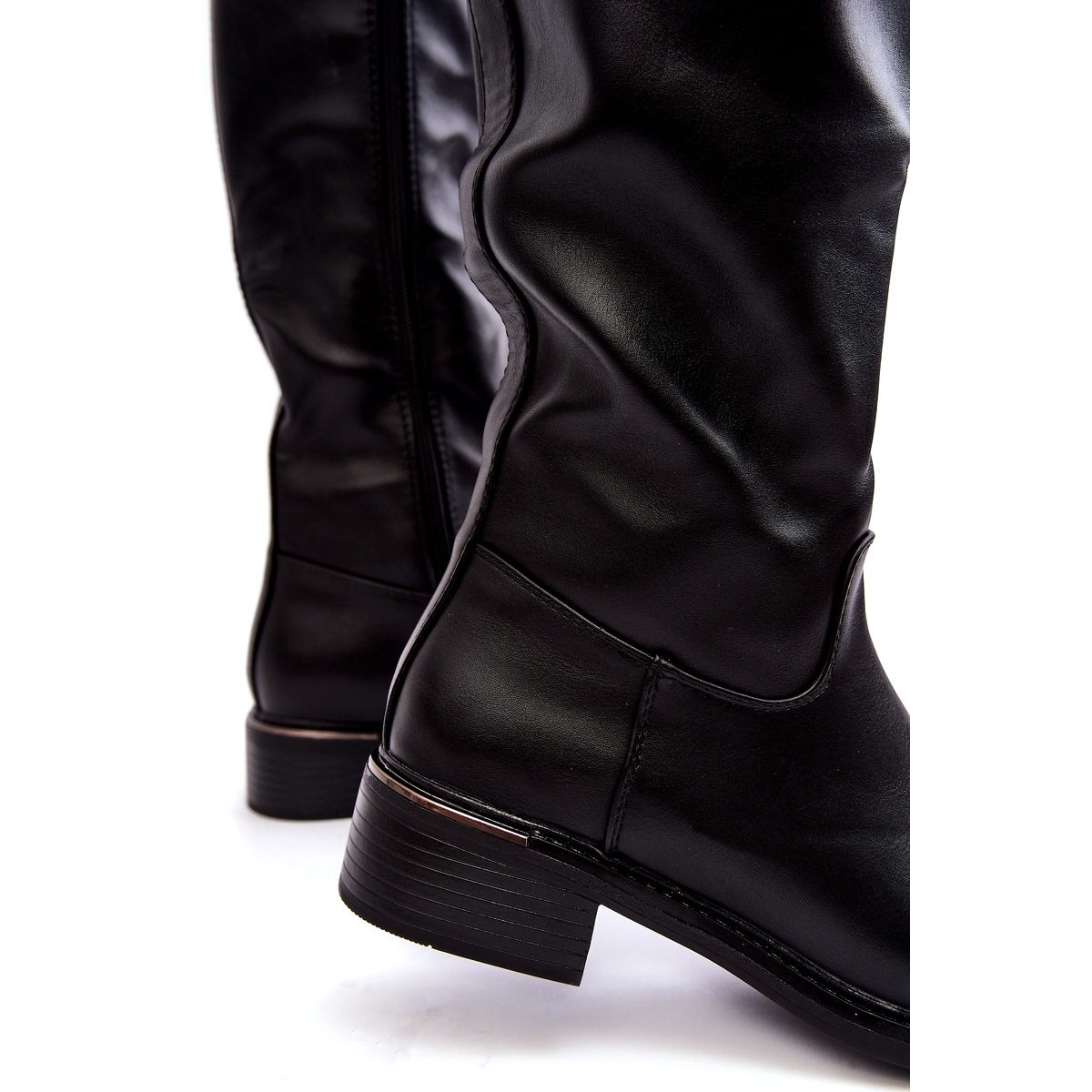 Descubra a elegância e o conforto com os saltos planos femininos da marca Diamantique. Essas botas clássicas e pretas foram cuidadosamente feitas de couro ecológico de alta qualidade, o que as torna não apenas elegantes, mas também ecológicas.