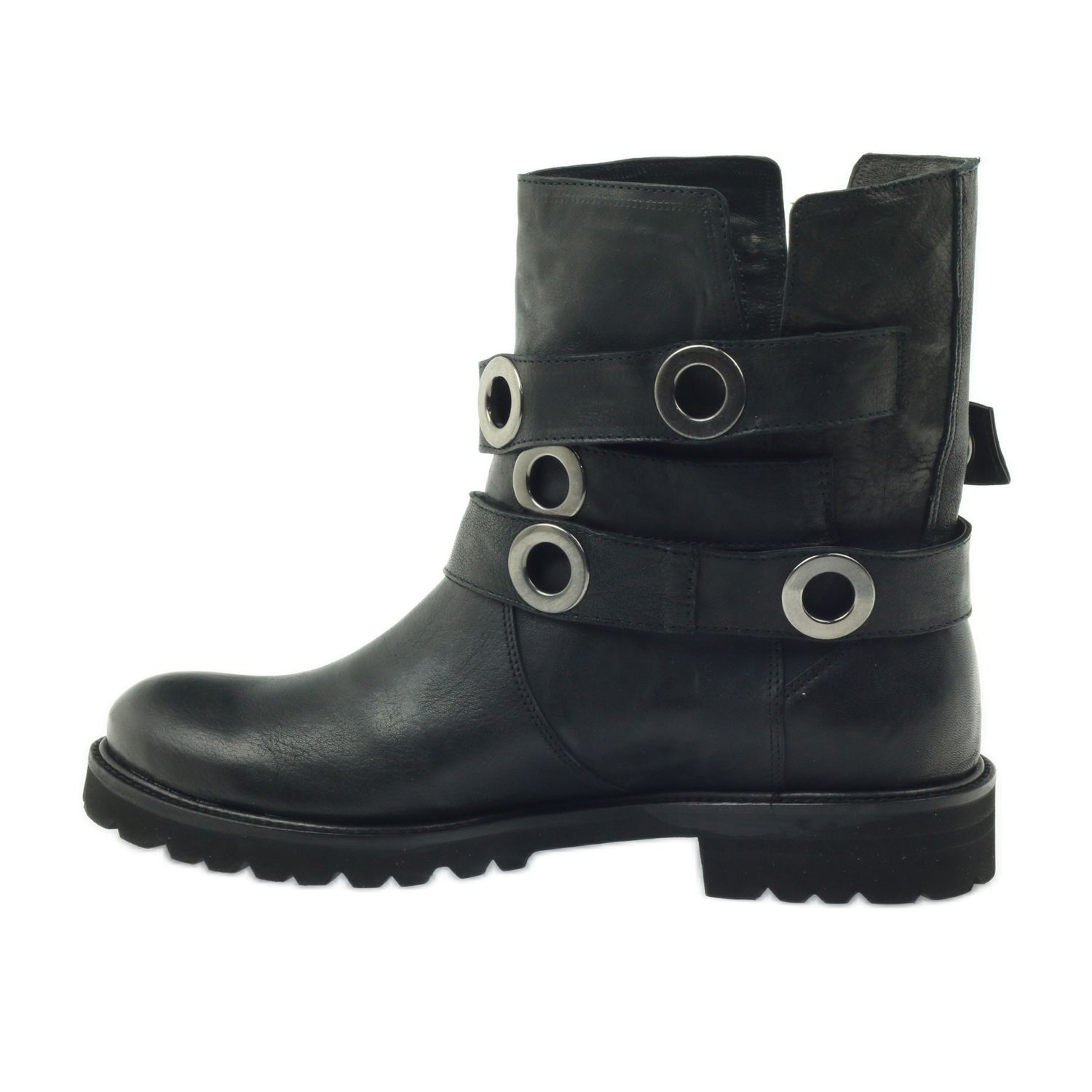 Os botins às riscas decorados com argolas Badura na cor preta são a escolha perfeita para as mulheres que procuram uma combinação de elegância e conforto nos dias de inverno. O modelo wz.7862 da marca polaca Badura distingue-se pelo seu cuidadoso acabamento em couro natural, que garante não só durabilidade, mas também um aspecto elegante.