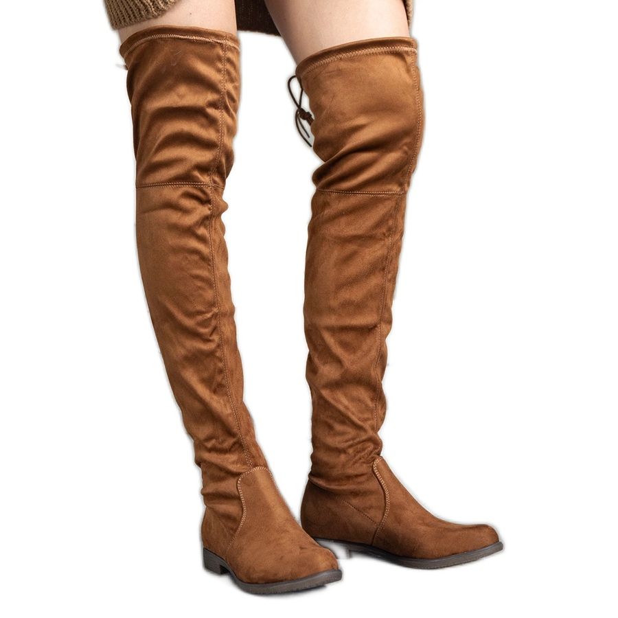 Botas longas marrons na plataforma feita de Eco-Oriente Halor é a escolha perfeita para mulheres que valorizam o estilo e o conforto. Essas botas da moda que atingem o joelho não apenas enfatizam a figura, mas também garantem o conforto de usar graças à plataforma de 2,5 cm de alta. Feito de camurça ecológica, eles são caracterizados por durabilidade e flexibilidade, o que permite o ajuste livre no pé.