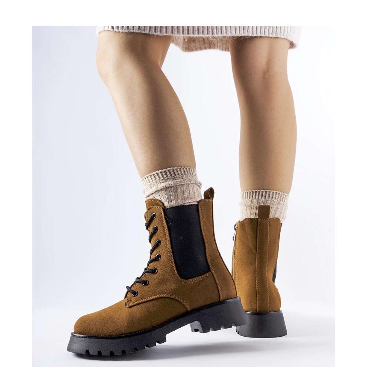 Brown Boots na enorme sola Sprford da marca Solea é a escolha perfeita para a próxima temporada de inverno. Seu design moderno, alcançando o tornozelo, combina clássicos com as tendências da moda atuais. O nariz redondo garantirá conforto e liberdade para os dedos, o que torna essas botas um ótimo companheiro todos os dias.