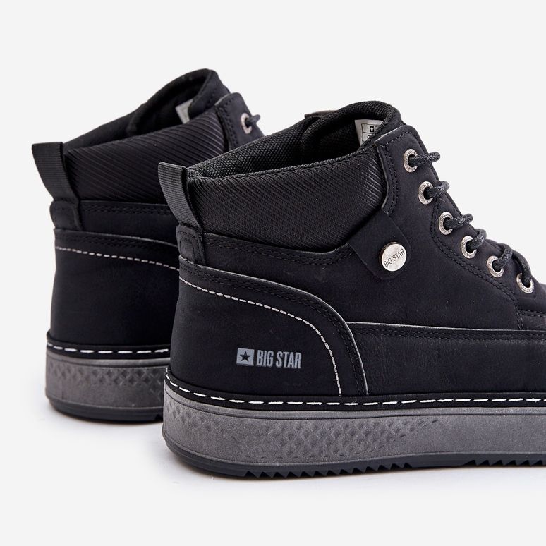 Detalhes: Botas masculinas Big Star com cordões OO174559 Hi-Poly System pretas preto