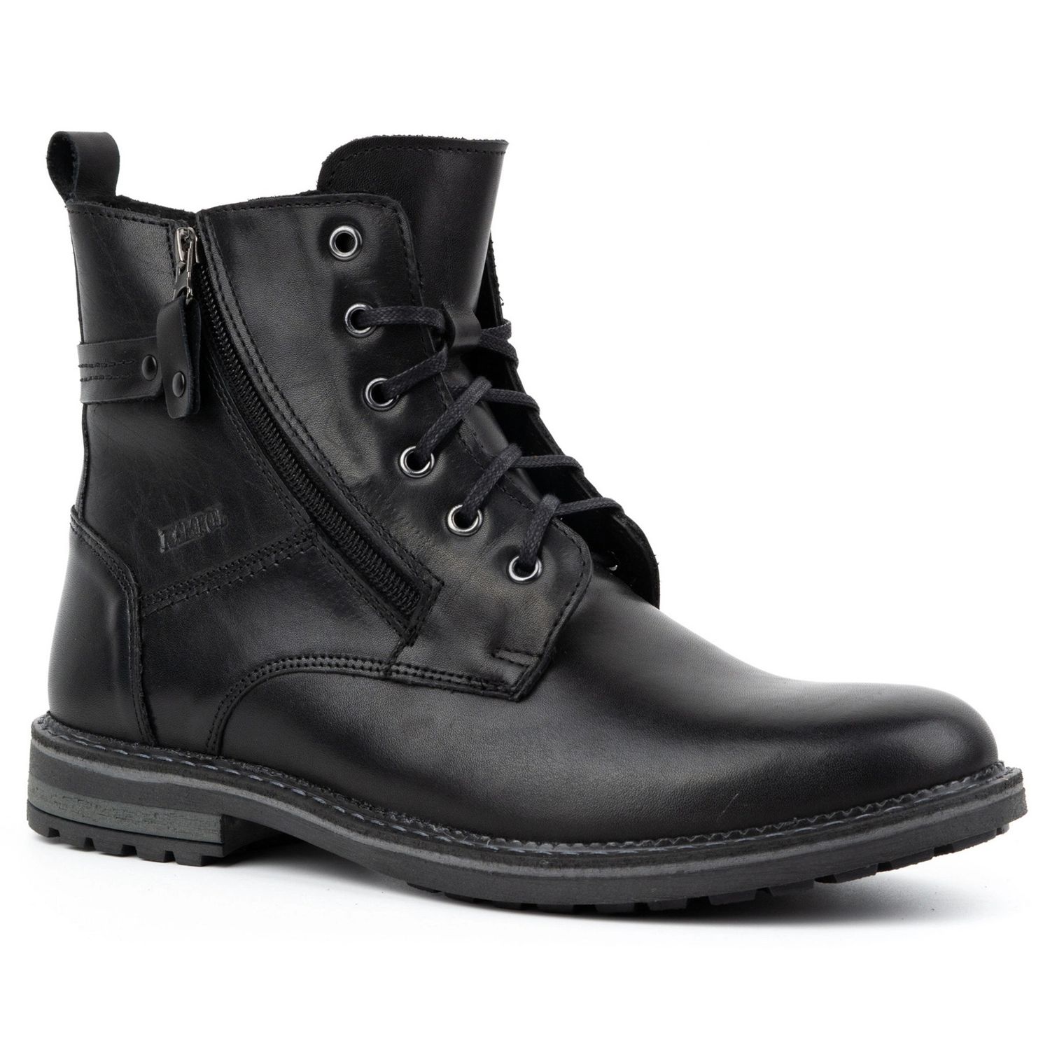 Detalhes: Kampol Botas masculinas de couro de inverno 155KAM, pretas preto