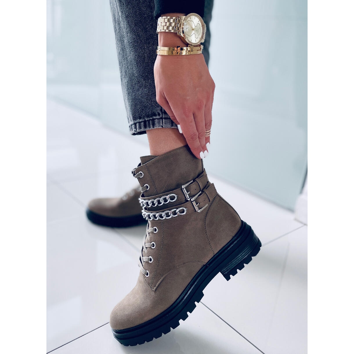 Os botins num lindo tom verde distinguem-se por impressionantes correntes prateadas na frente, que os tornam expressivos e modernos. Graças ao prático fecho lateral, calçar o calçado torna-se rápido e cómodo, o que o torna perfeito para o uso diário.